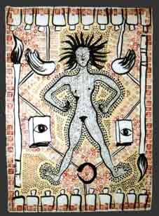 Me Nashi (No Eyes) Merissa Dreaming, Handmade paper, ink paint, hankos, 60 x 85cm Homesick 1993
