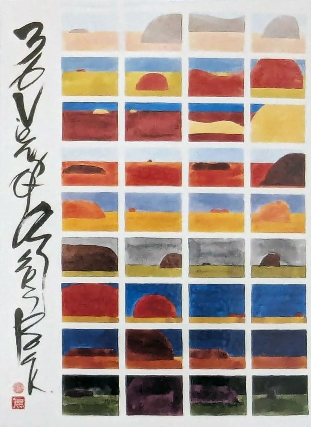 "36 views of Ayres Rock" (After Hiroshige's 36 views of Mt. Fuji) Ink and watercolour on paper, A1 size, Homesick, 1993