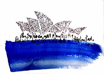 "We Love the Opera House" (List of ten quotes describing the Opera House.) Ink on Paper, 55 x 80cm, 1992
