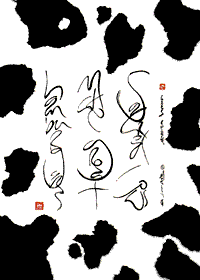 "Sacred cows make great hamburgers" > Robert Reisner. Hari-e and ink mounted on panel 52 x 73cm, 1997