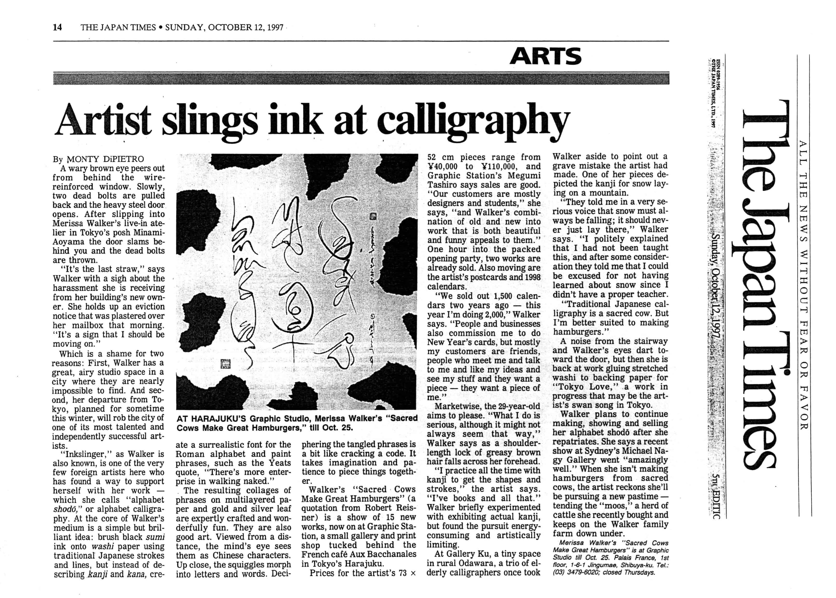 - The Japan Times - Artist slings ink at calligraphy 97.10.12